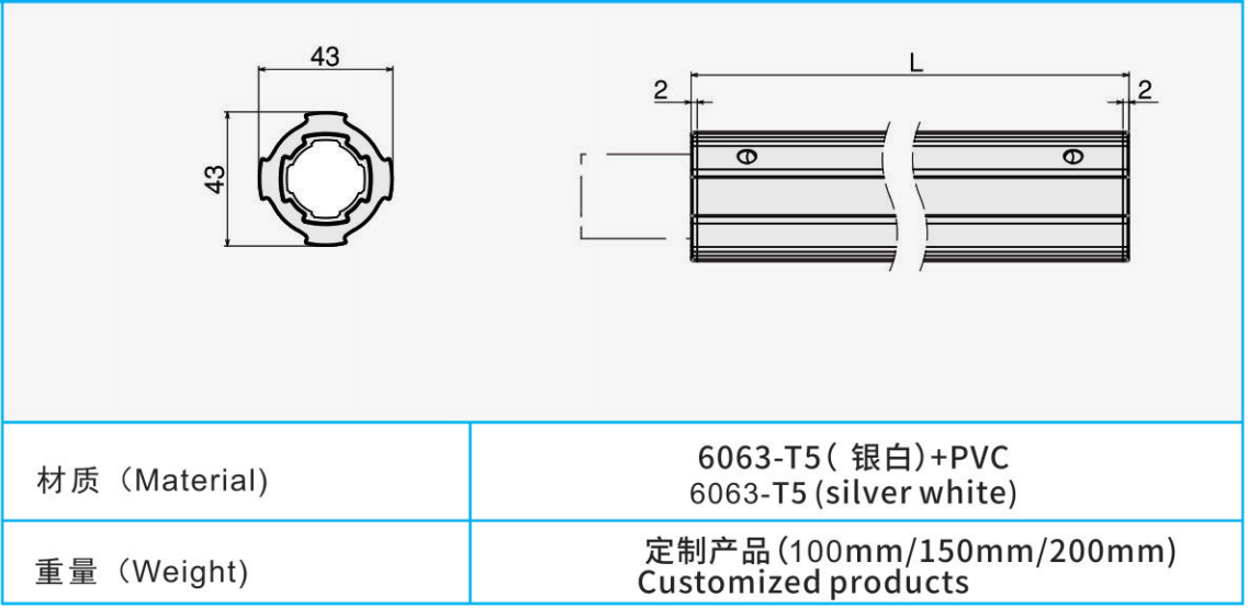 材質(zhì):6063-T5(銀白)+PVC