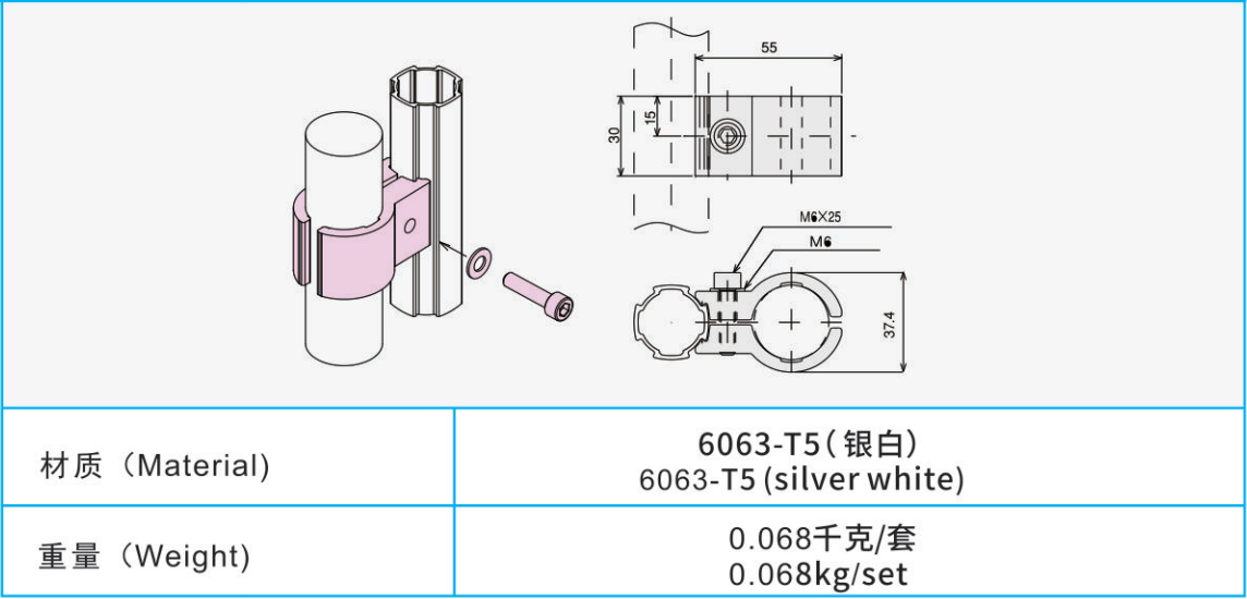 材質:6063-T5(銀白)